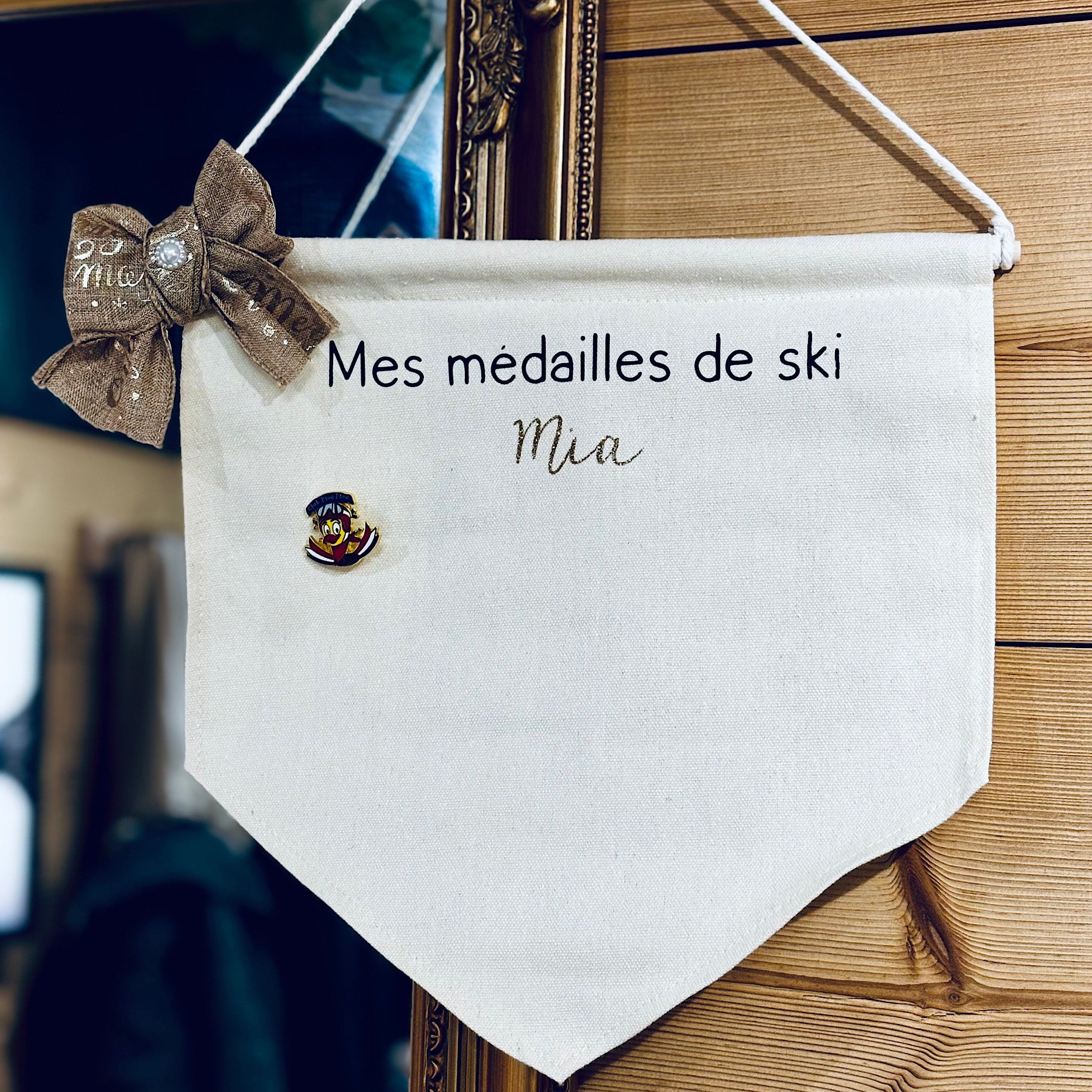 Affichez fièrement vos médailles de ski avec notre fanion "Mes médailles de ski". Pratique et élégant, il permet d’exposer vos médaillons tout en ajoutant une touche personnelle grâce à la possibilité de le personnaliser avec votre prénom. Ce fanion est l’accessoire idéal pour mettre en valeur vos exploits sur les pistes et garder vos souvenirs bien en vue.