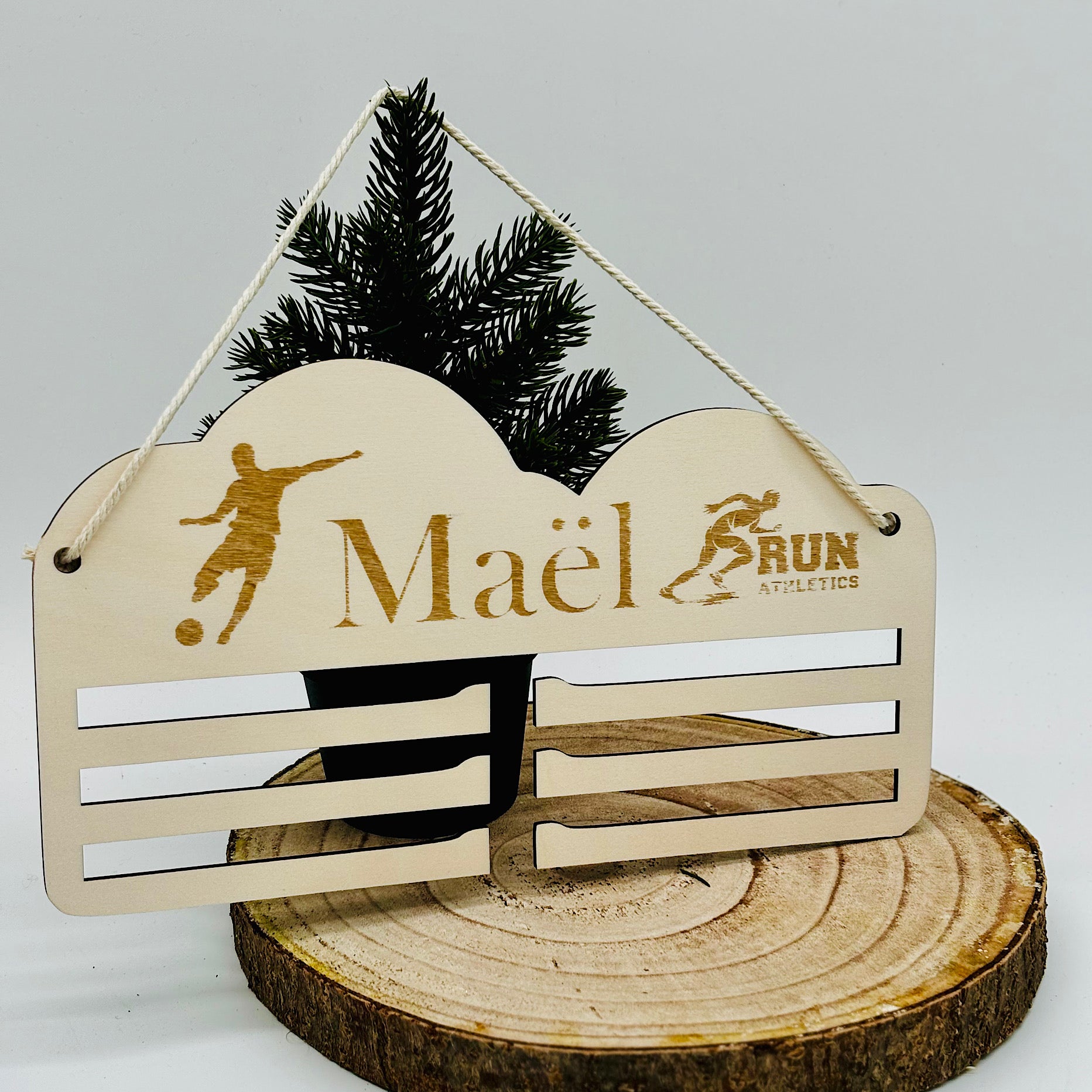 Ce porte médailles personnalisable vous permet d’afficher fièrement vos récompenses en associant le sport de votre choix et un prénom, pour une touche unique et personnelle. Facile à fixer, il valorise vos efforts tout en ajoutant une note chaleureuse à votre espace. Un support aussi motivant qu’élégant pour célébrer chaque réussite.